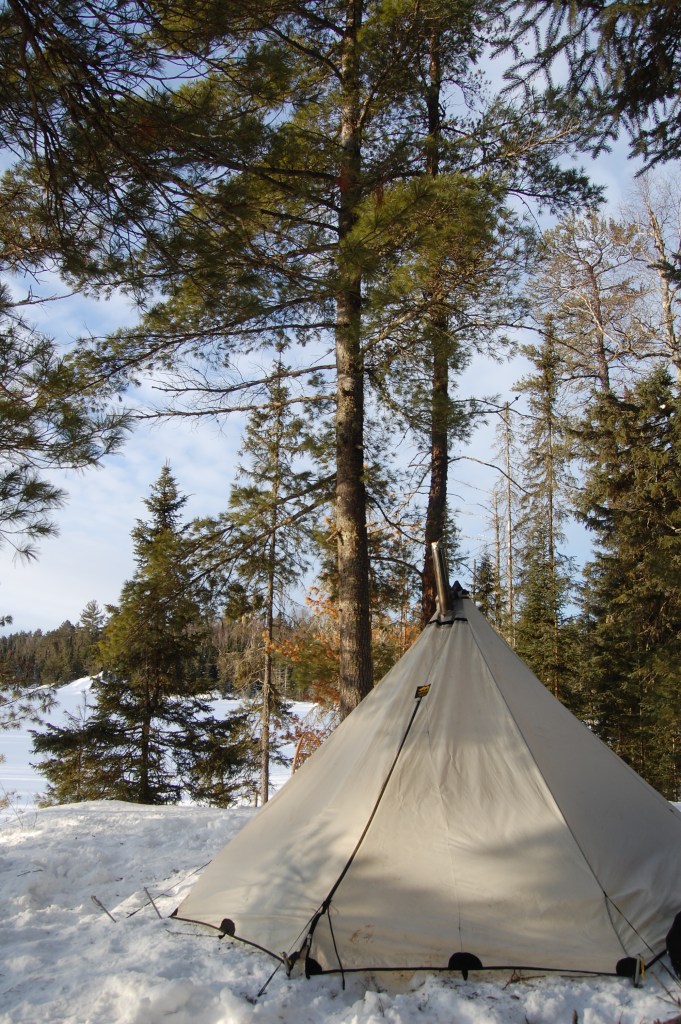 If you’re interested in reading about winter camping with traditional equipment check out this post. I didn’t wear wool, but I did run a toboggan, wood stove and traditional snowshoes.