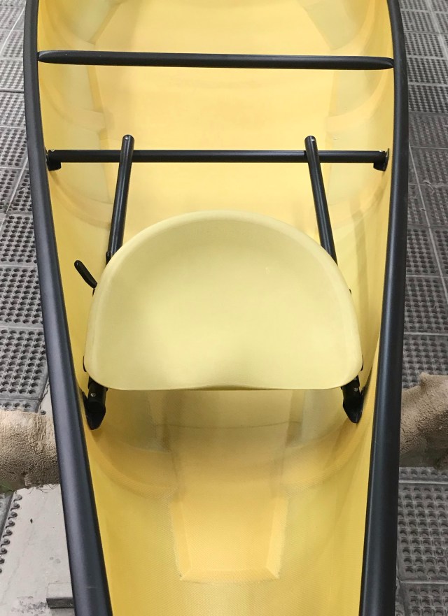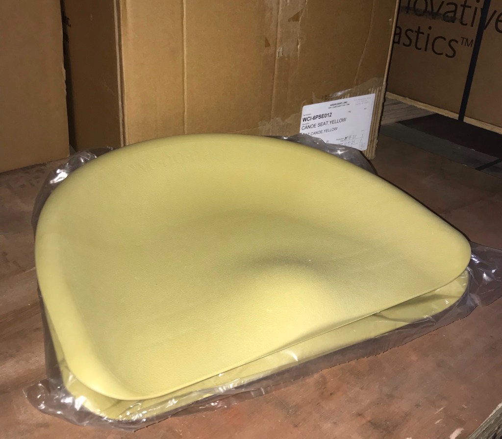 [Wenonah’s Western States sales rep, Kurt Renner, has been paddling and racing Wenonah canoes since the 1980’s. He told me that it was Ralph Sawyer, founder of Sawyer Canoe Company, who first introduced the bucket seat. Sawyer was a competitive canoe racer and knew the value of a comfortable seat. He realized that farmers spend a lot of time sitting on tractors and used a tractor seat as the model for his first bucket canoe seats.]