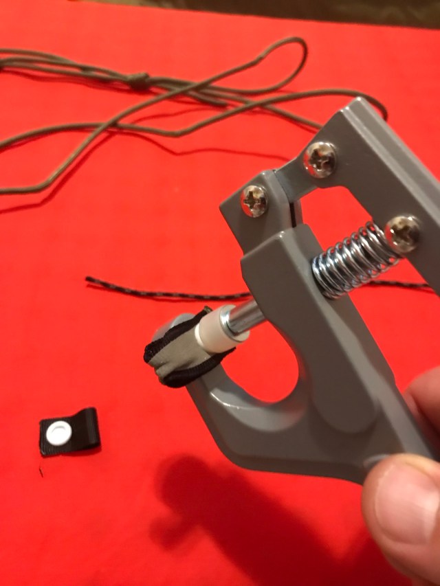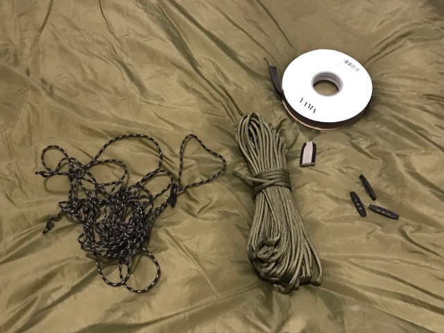 I read a few reviews, looked at a few different designs and decided to come up with a sort of hybrid between the two. One thing that I saw in reviews was that stretchy straps made from elastic bands or bungee seemed to shift around for some users. With this in mind, I decided to use 550 cord for the strap with a combination of toggles and KAM snaps to secure the straps to the quilt. These materials would eliminate stretch in the pad straps while still allowing adjustability and ease of entry.