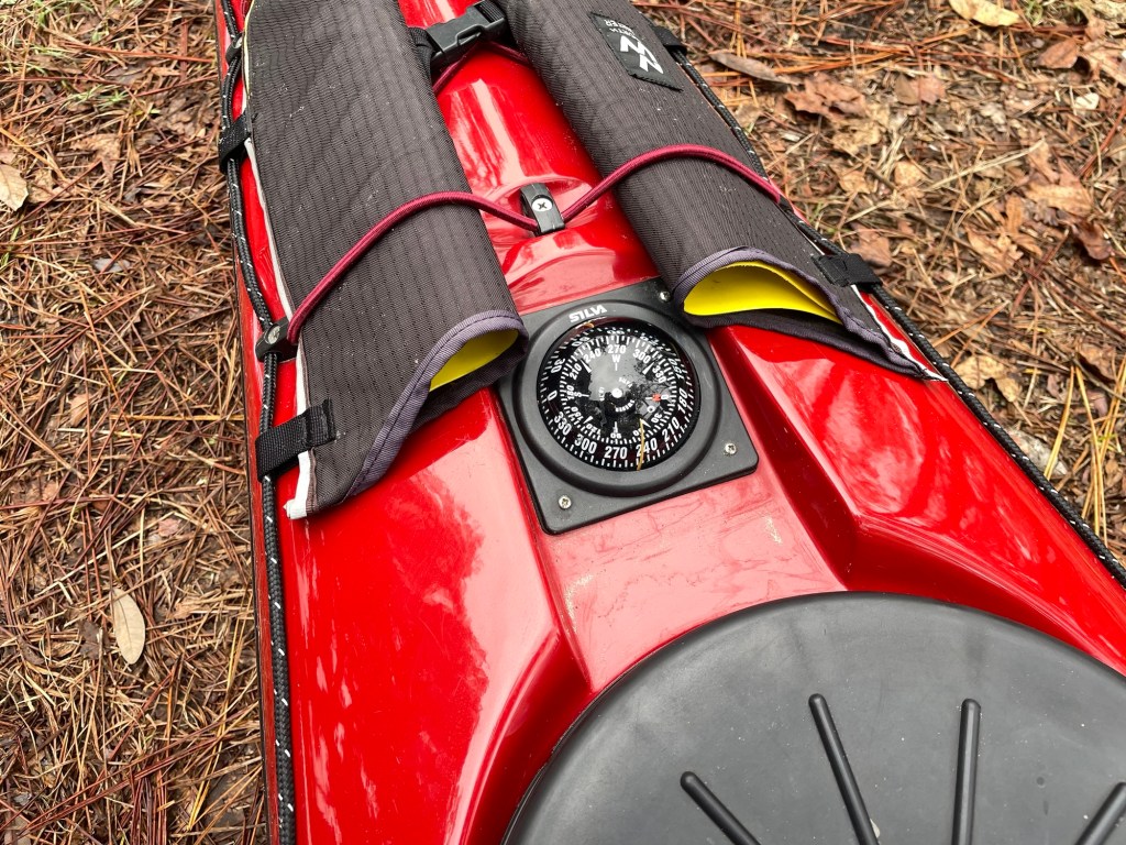 That said, mounting the compass so far forward on the kayak has some disadvantages as well. First off, it can be difficult to read. Those of use who’ve made a few cycles around the sun will find ourselves squinting to read the card mounted waaaay up there. This is made even more challenging once a few water droplets find their way onto the dome of the compass. And with the compass so far away, there’s no practical way to wipe those droplets off.